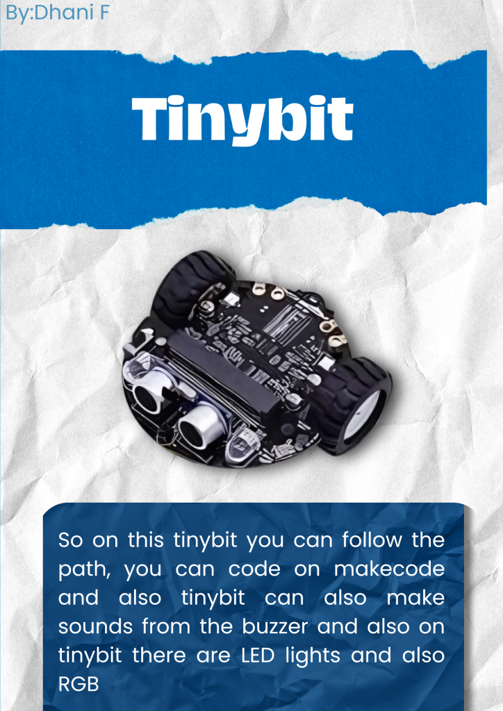 So in this project I made a code for this Tinybit, so I made a code so that this tinybit can follow the black line and can turn on the LED lights and also the RGB lights, and I made this code for 1 day and I also took a long time to collect it because I had to make a demonstration video and there I had to explain the parts of the tinybit, explain the tinybit code and show a video when this tinybit was running in its arena.